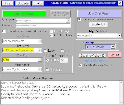 Hace unos días os comente que hay un nuevo booter que saca el servidor cs130.msg.ac4.yahoo.com. La única manera que les queda es entrar con un perfil mediante el Yahoo messenger 8.1, Yazak, o Yahelite. En este caso les daremos todas las alternativas para que no os puedan sacar de la sala. Usar un perfil mediante el Yazak.